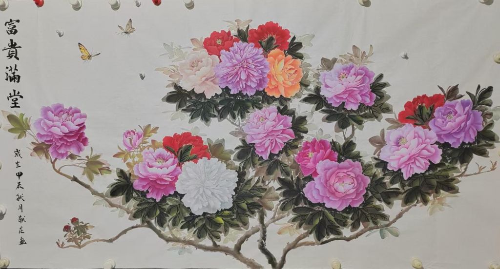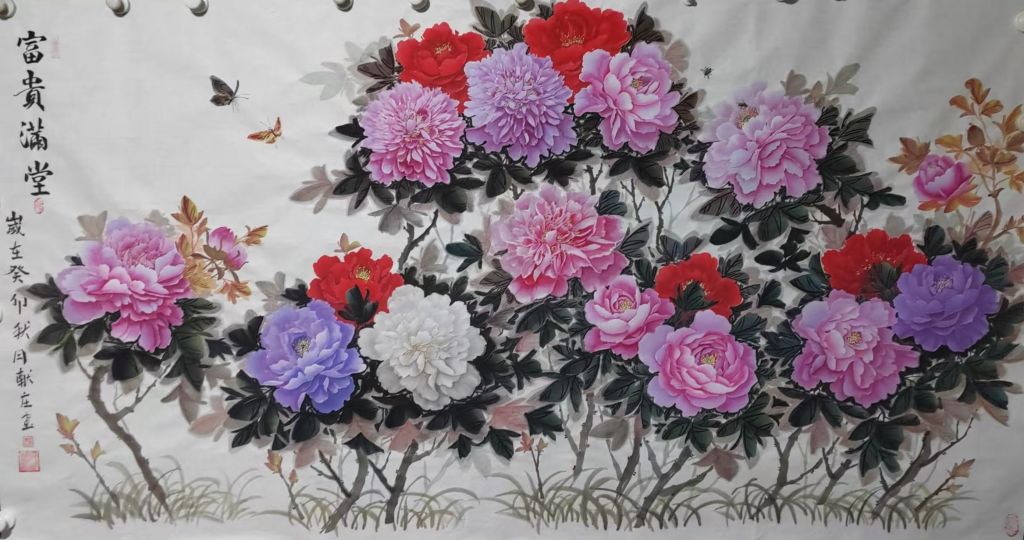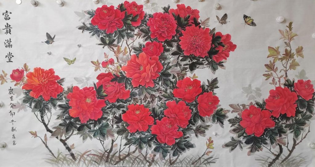 总体而言,杨献庄老师的《富贵满堂》作品以其色彩的饱和度、形态的生动以及整体的和谐感,充分展现了作者高超的绘画技巧和对传统艺术的深刻理解。整幅作品在传递富贵吉祥之意的同时,又通过细腻的笔触和生动的构图,传递了一种温暖而富有生命力的艺术氛围。希望杨老师继续创作更多具有深刻寓意且技艺高超的作品,带给我们更多美的享受!