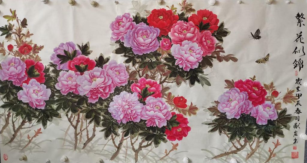 在教学与组织活动之余,杨献庄始终保持对艺术创作的热情。他的作品多次入选省市级展览,其中小写意牡丹画作以其清新脱俗的风格、细腻的笔触和独特的艺术表现力,深受大众喜爱,展现了他在国画创作领域的深厚造诣。
