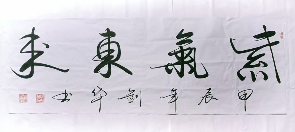 杨剑华老师的这幅《紫气东来》书法作品气势恢宏,笔力遒劲,展现了极强的艺术感染力与文化韵味。