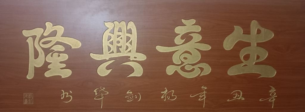 首先,从整体布局来看,这幅横幅作品结构匀称,四个大字分布得当,既有稳重感,又富有流动之美。书法在整体排布上呈现出一种自然舒展的状态,每个字之间既保持了独立的个性,又在视觉上形成了和谐统一的整体感,使人一眼望去便能感受到作品的气势和韵律。