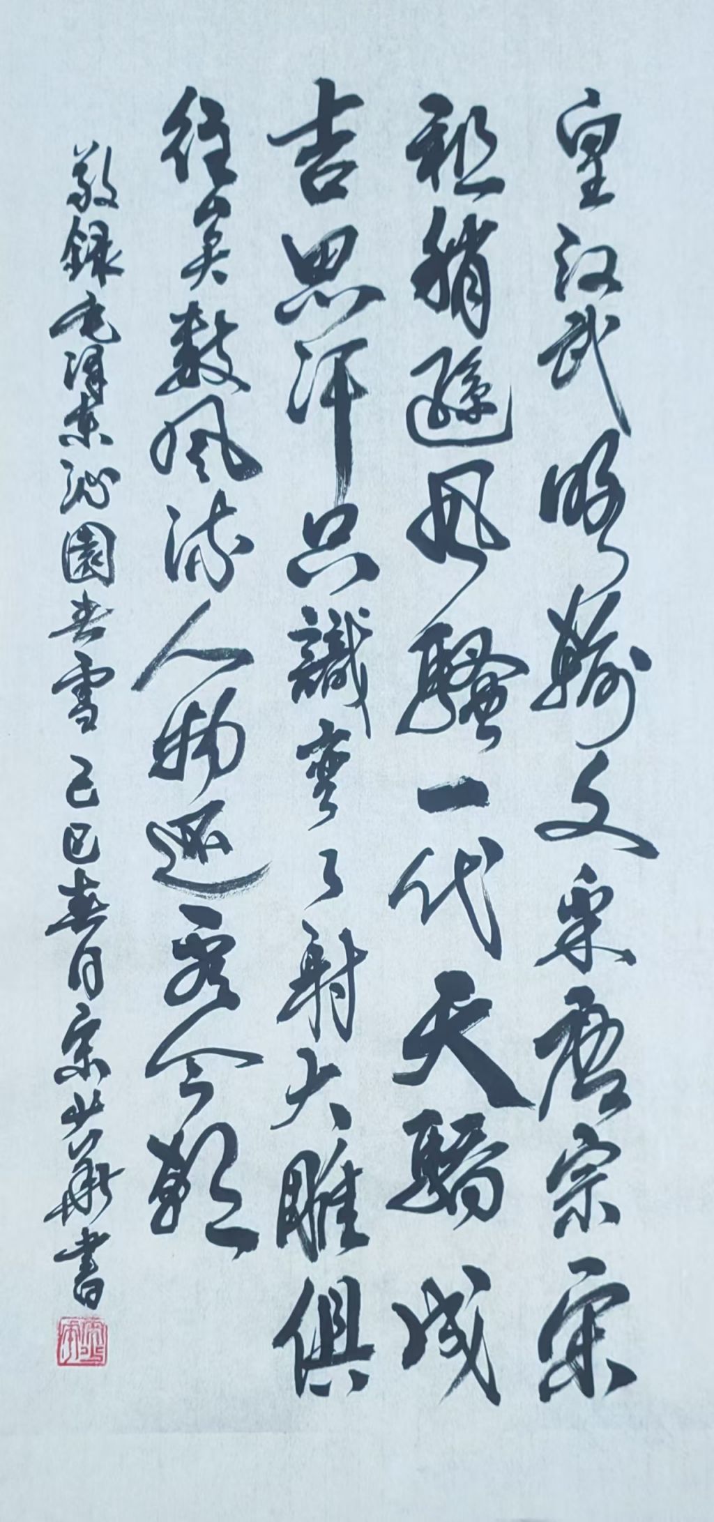 此外,宋老师还在“凤龙”二字的表现上非常独到,字形的变化有力且生动,尤其是在“凤”字的曲线表现上,笔锋的细腻和流畅令人印象深刻。两个字的书写技巧展现了作者深厚的功力与细致入微的审美,字与字之间相互呼应,极富艺术张力。